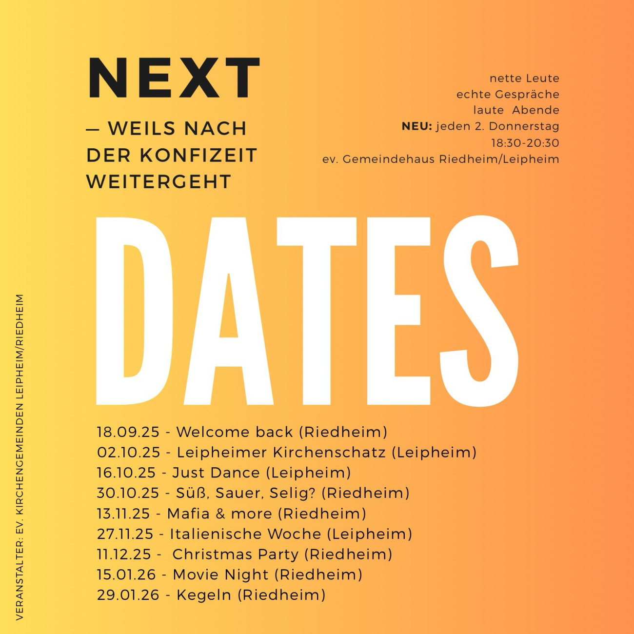 Du machst viel ehrenamtlich und willst einfach mal wieder irgendwo Teilnehmer:in sein? Du möchtest dich tiefgehender mit der Bibel und deinem Glauben beschäftigen und dich hier in guter Gemeinschaft austauschen? Dann pack dir etwas Kleingeld und eine Bibel ein und Check zum nächsten Jugendbund. Wir treffen uns im Schnitt alle 2 Wochen freitags ab 19 Uhr in einem Gemeindehaus des Dekanats und kochen gemeinsam, genießen die Gemeinschaft mit Brettspielen, Chillen und tauschen uns in einer Andacht tiefgehender über unseren Glauben aus. Da wir immer wieder den Ort wechseln und auch mal spontan das ein oder andere unternehmen, organisieren wir uns über eine WhatsApp-Gruppe. Bis bald! Wir freuen uns! :) Anmeldung und weitere Infos: anmeldung.ej-nu.de/0262